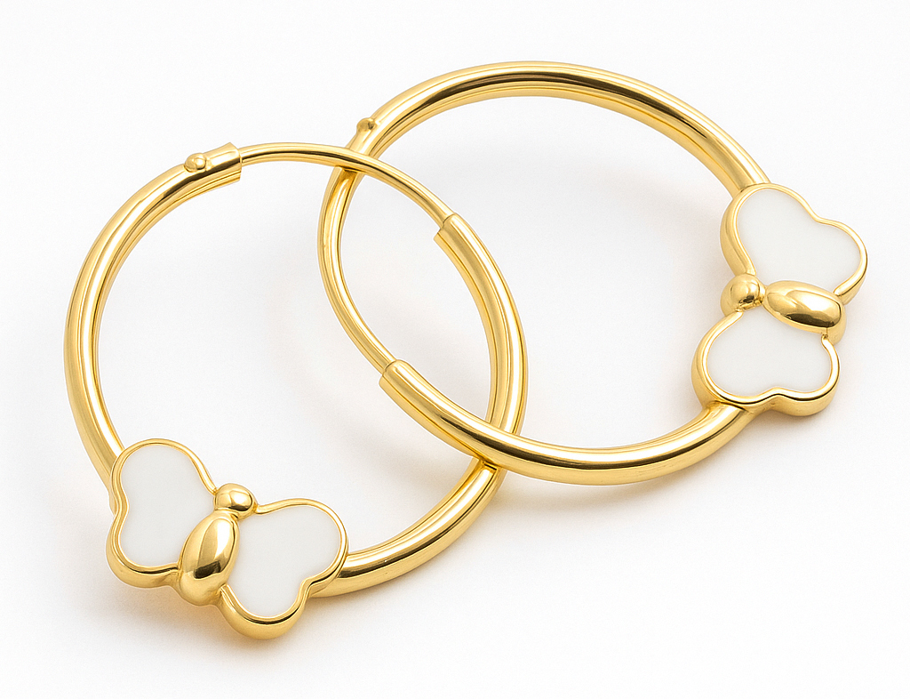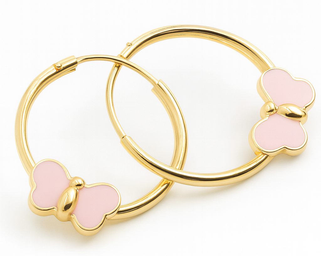 PARES AROS CON MARIPOSAS ESMALTADAS