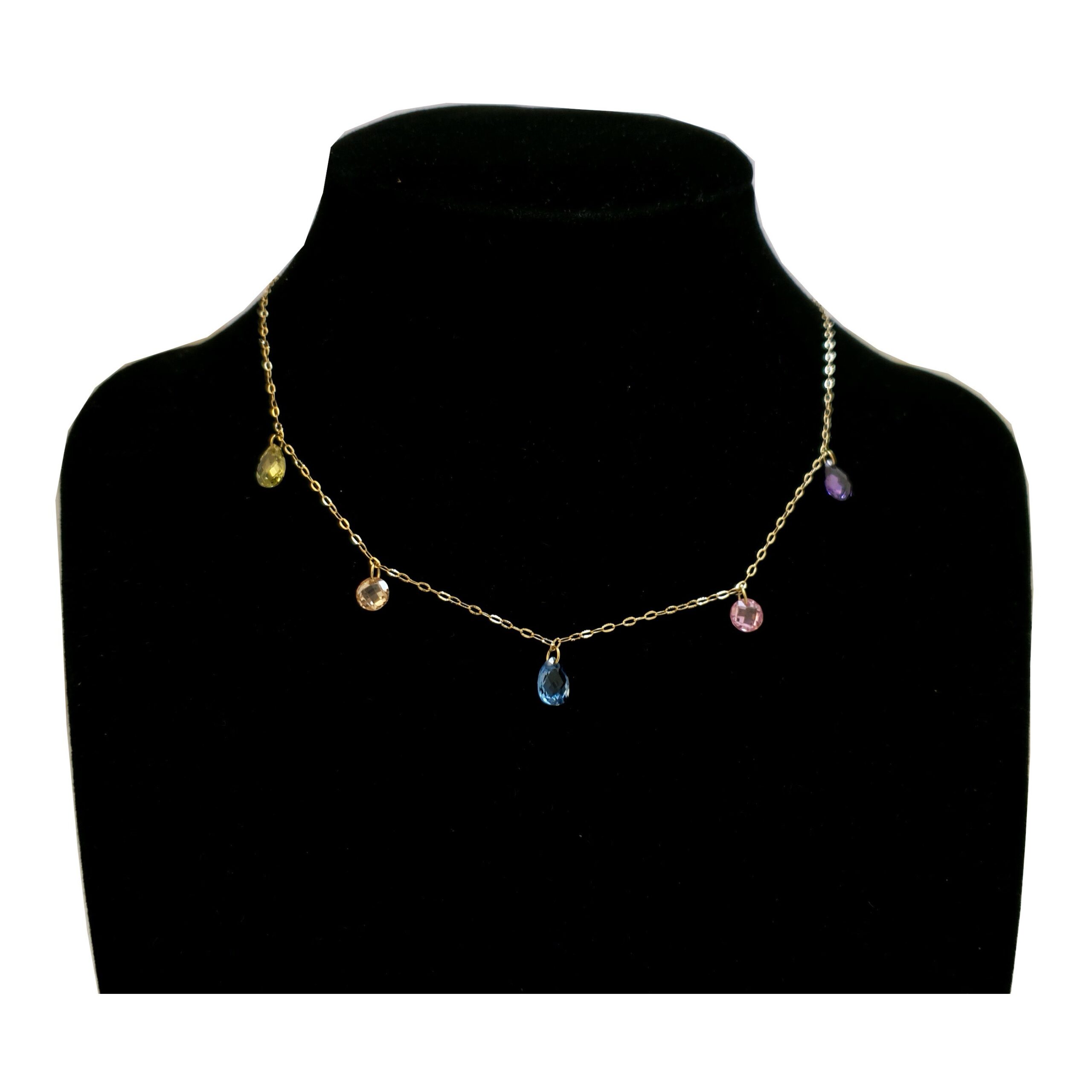 Gargantilla 3 Piedras Briolet Lágrima Taladrada + 2 Piedras Briolet Taladrada. Peso 2,03 gr.