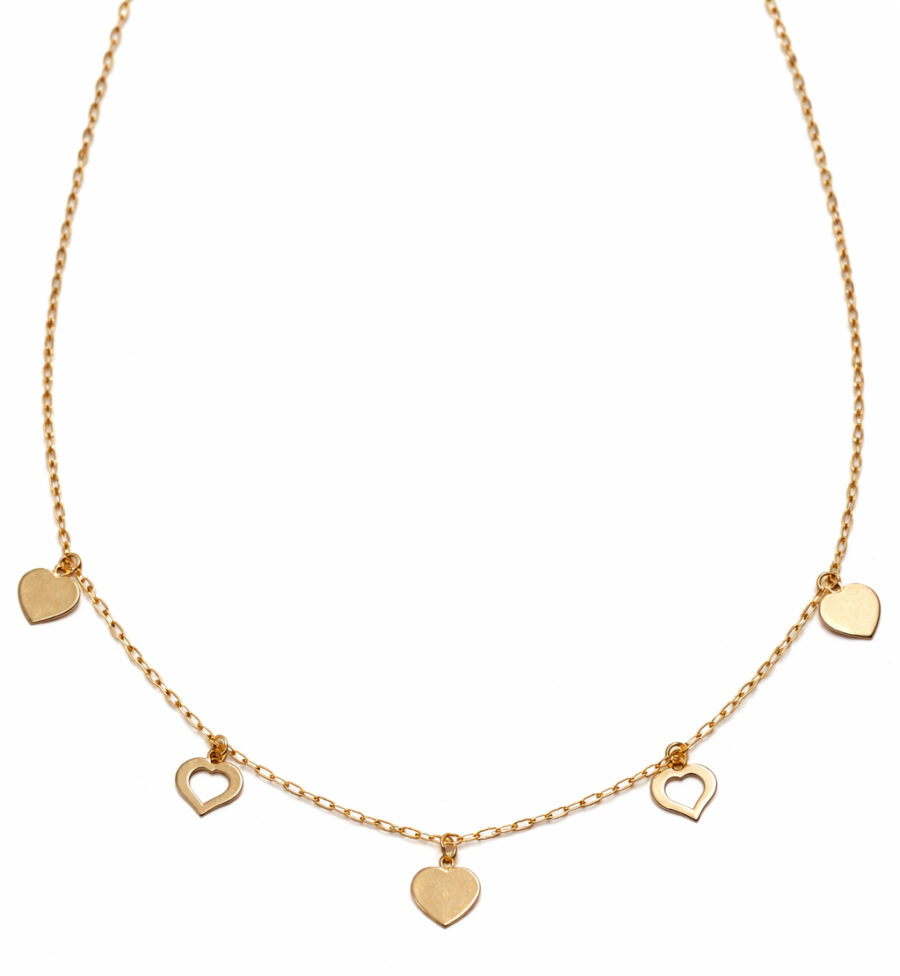 GARGANTILLA CON 5 CORAZONES Y CADENA FORZADA BRILLANTADA