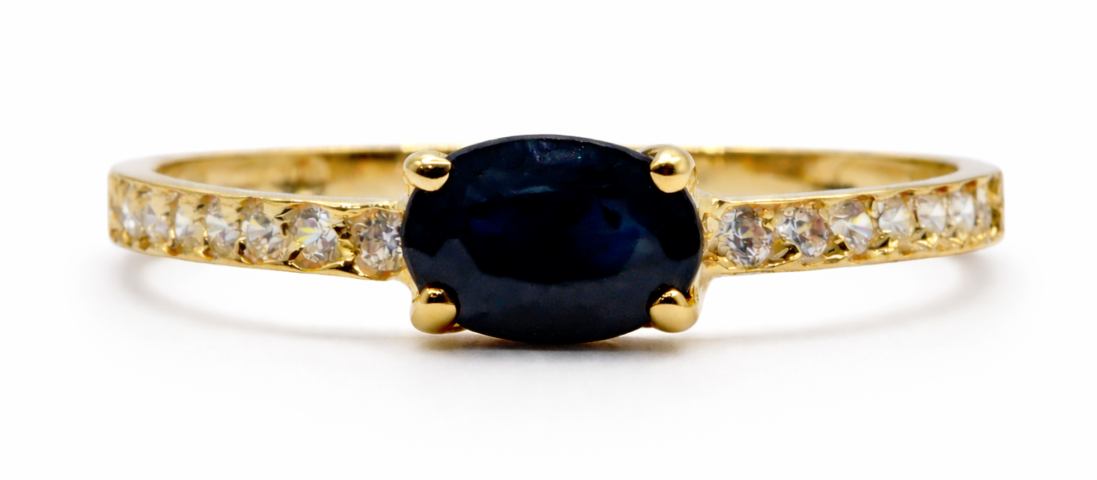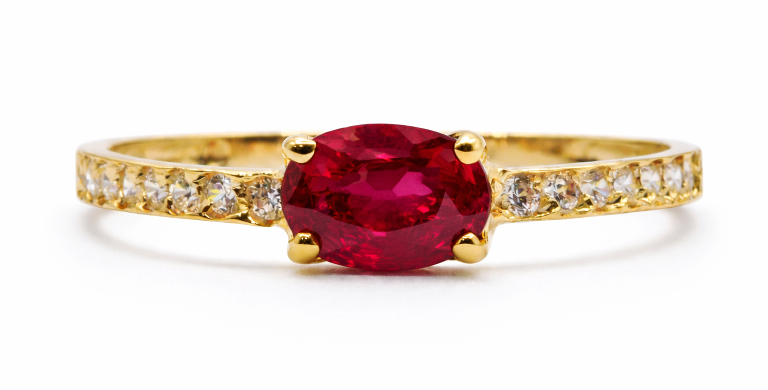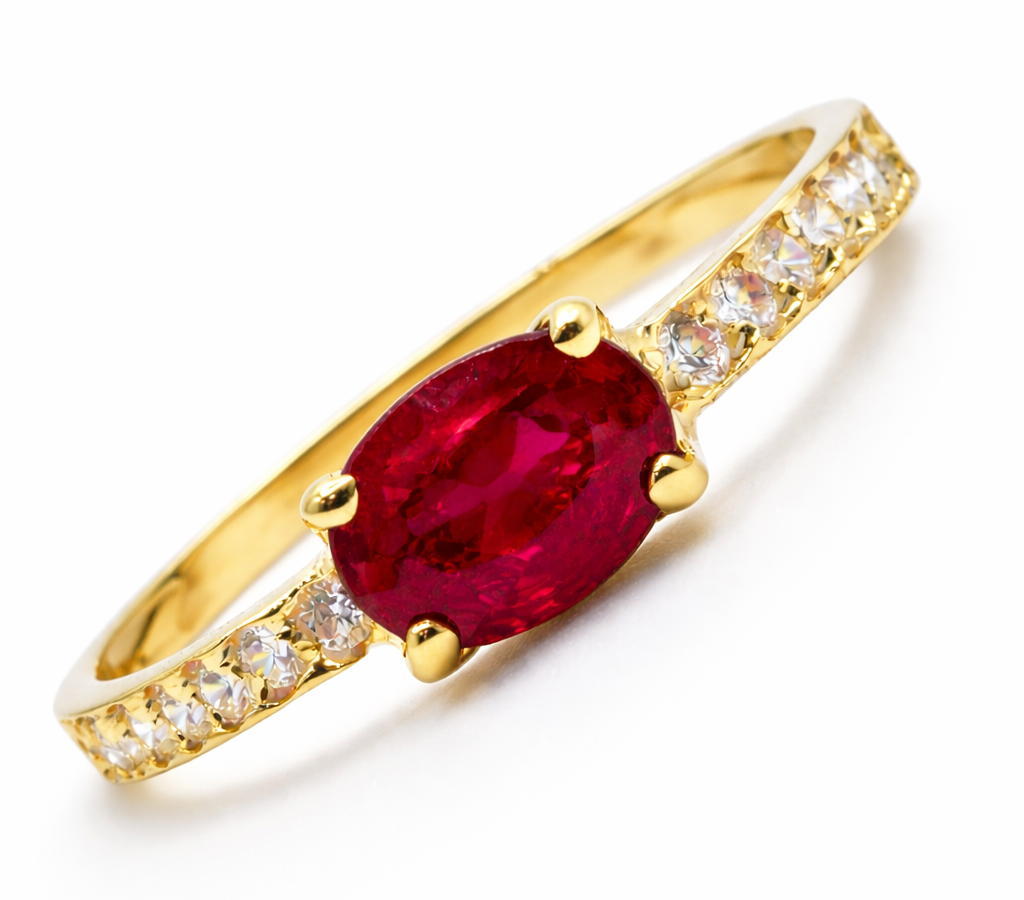 SORTIJA CON CIRCONITAS Y PIEDRA CENTRAL RUBI, ESMERALDA O ZAFIRO