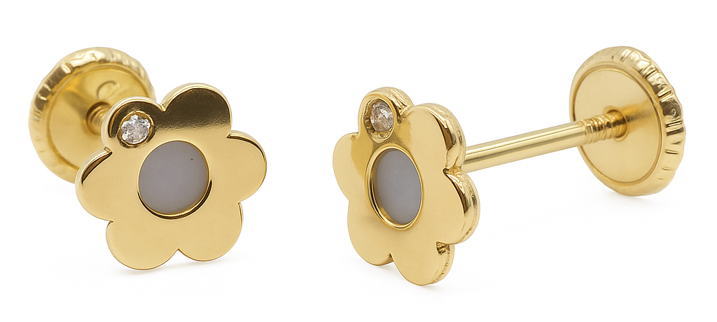 PAR DE TORNILLO DE FLOR CON NACAR NATURAL Y CIRCONITA