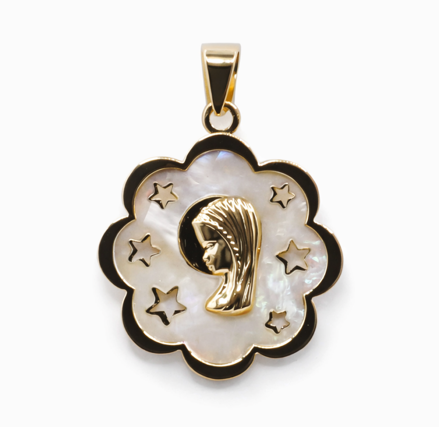 MEDALLA FLOR CON NACAR NATURAL DE VIRGEN NIÑA